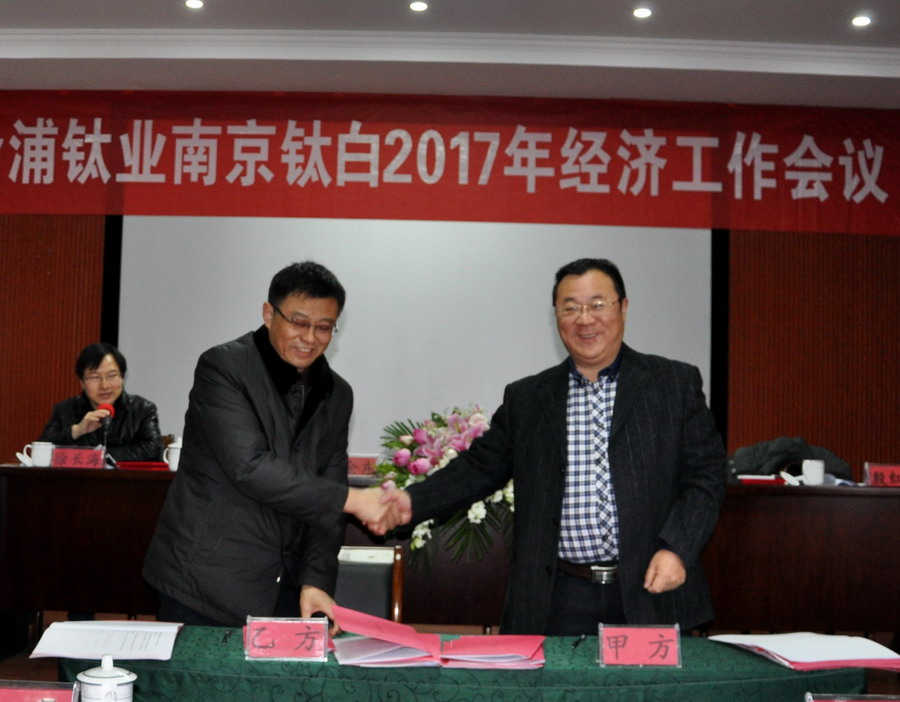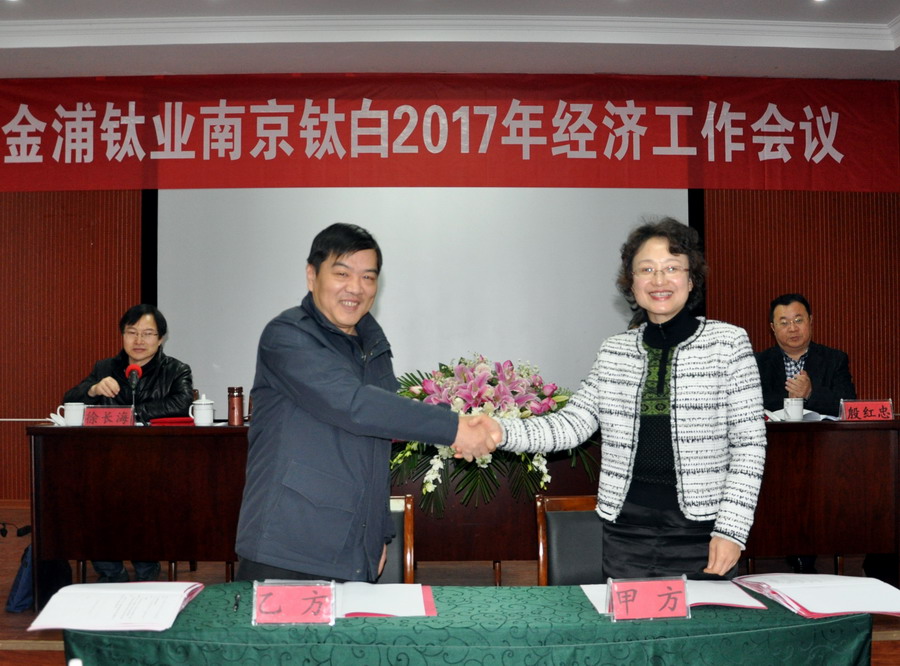 2017年元月14日-15日,南京鈦白公司2017年經(jīng)濟工作會議暨2016年度表彰會順利召開,并圓滿完成會議各項議程。集團副總裁李友松、相關(guān)部門領(lǐng)導(dǎo)以及金浦鈦業(yè)、南鈦公司領(lǐng)導(dǎo)、全體中層干部、公司標(biāo)兵等60余人參加會議。鈦白公司副總經(jīng)理徐長海主持會議。