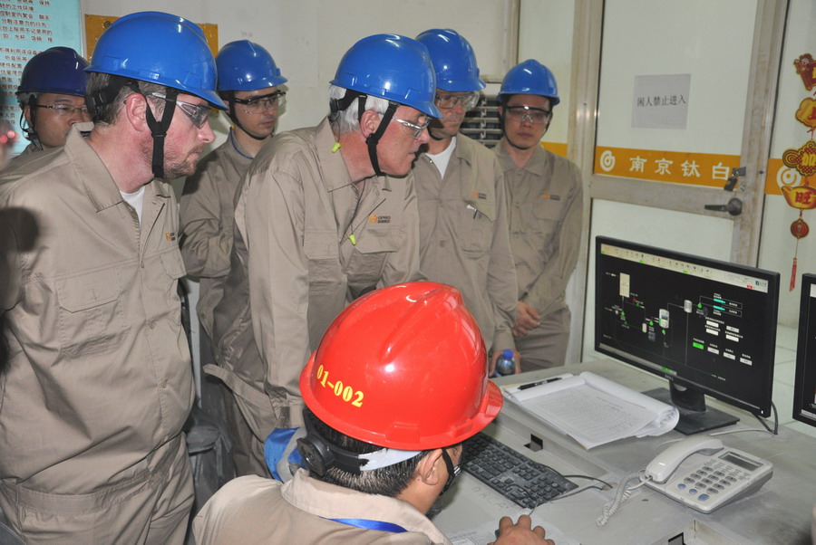 6月13日-15日在寧期間,考察組專家參觀了南京鈦白公司生產(chǎn)裝置現(xiàn)場及品質控制部門,雙方就南京鈦白公司的生產(chǎn)工藝裝備、技術水平、HSE設施、產(chǎn)品組合等多方面議題進行了深入廣泛的交流。經(jīng)過近三天的現(xiàn)場考察交流,考察組專家對南京鈦白的生產(chǎn)裝置狀態(tài)、工藝技術成熟度、技術團隊對鈦白工藝理解深度以及積極深入探討合作交流的態(tài)度等各方面考察情況給予了充分肯定和褒揚。