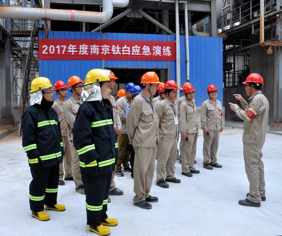 為了進一步增強公司員工消防、疏散和急救等安全意識,檢驗公司消防設(shè)施及報警系統(tǒng)功能,提高員工抗擊突發(fā)事件的應(yīng)變能力和自我防護能力,南京鈦白公司根據(jù)2017年度“安全月”活動計劃安排,于6月22日上午在二車間余熱利用工序組織開展了一場“熱油管線泄露起火”消防應(yīng)急演練活動。此次演練由公司安環(huán)部主辦,二車間、電儀中心及相關(guān)部門、車間代表參加演練。集團生產(chǎn)部領(lǐng)導到現(xiàn)場進行了觀摩。