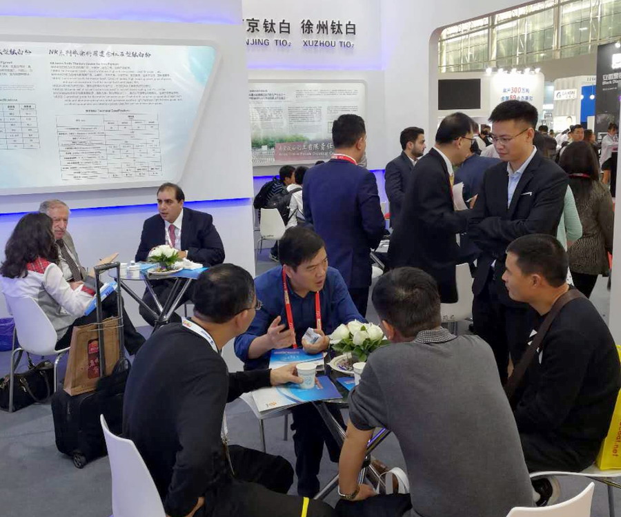 金浦鈦業(yè)作為展商也參加了此次展會。金浦鈦業(yè)總經(jīng)理彭安錚女士親自率領(lǐng)包括南京鈦白、徐州鈦白、以及國貿(mào)公司的銷售團隊出席展會,并在展會現(xiàn)場,以飽滿的熱情,周到的服務(wù),迎接來自國內(nèi)外的客商。金浦鈦業(yè)展臺前人流如織,絡(luò)繹不絕。