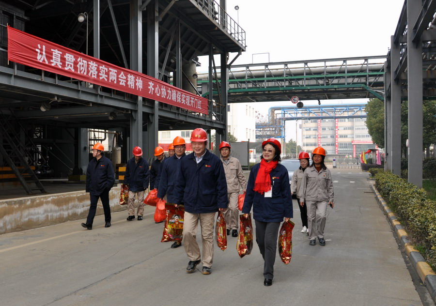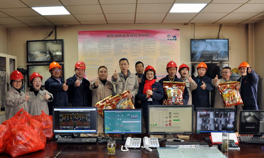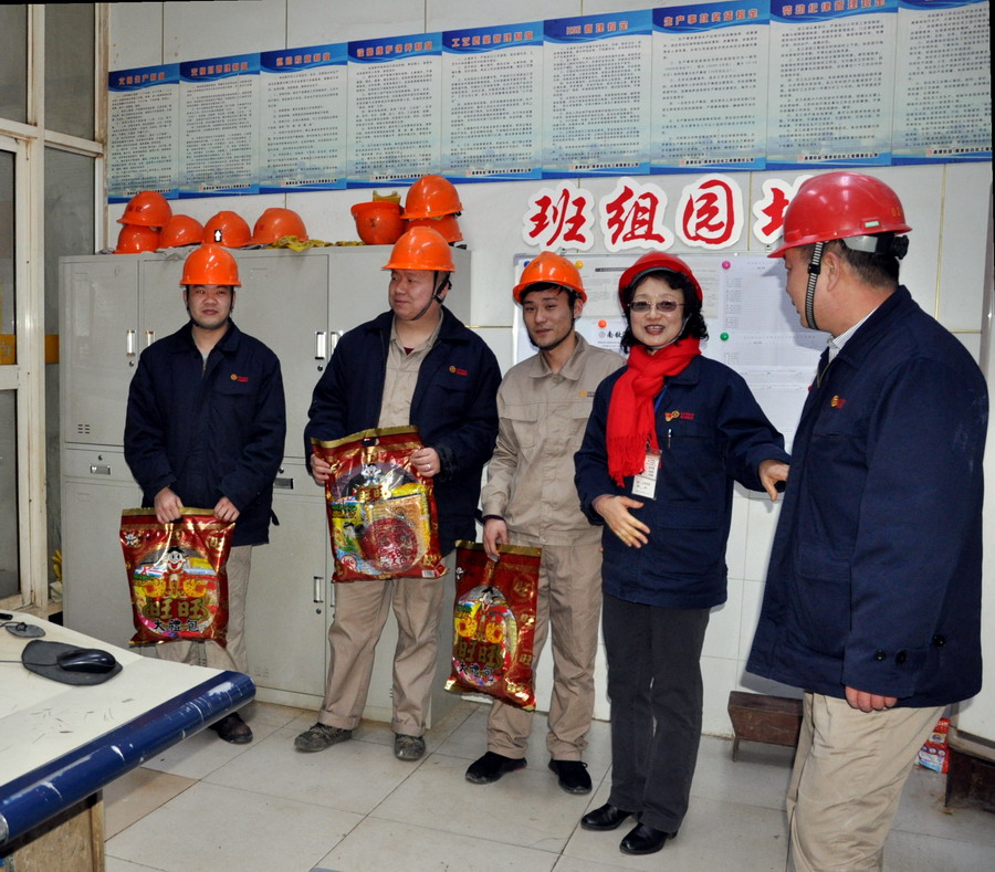 一大早,公司董事長彭安錚女士率副總經(jīng)理高嶺、以及各部門值班干部深入生產(chǎn)一線,看望慰問節(jié)日期間仍然堅守崗位的廣大員工,給員工們拜年,并向他們致以節(jié)日的問候和新春的祝福。