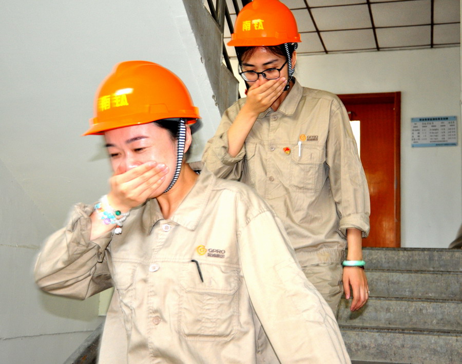 當(dāng)天下午14時整,應(yīng)急疏散逃生演練正式開始。本次演練“設(shè)定”公司調(diào)度樓二樓質(zhì)檢中心干燥間因電線老化、過熱引發(fā)火災(zāi),員工發(fā)現(xiàn)后立即報警并主動開展救火