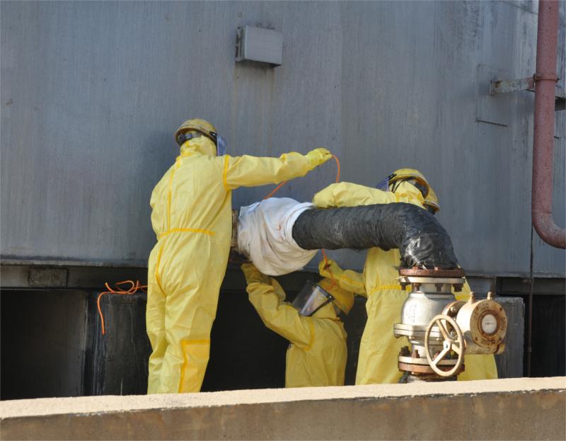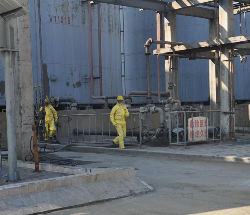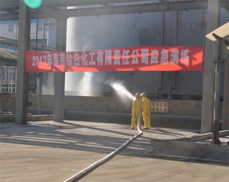 2013年12月27日下午14:00,鈦白公司成功組織了一場硫酸泄漏事故應急演練。演練事故假設為硫酸罐區(qū)V1101A根部閥門泄漏。
