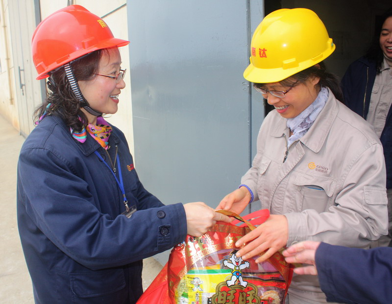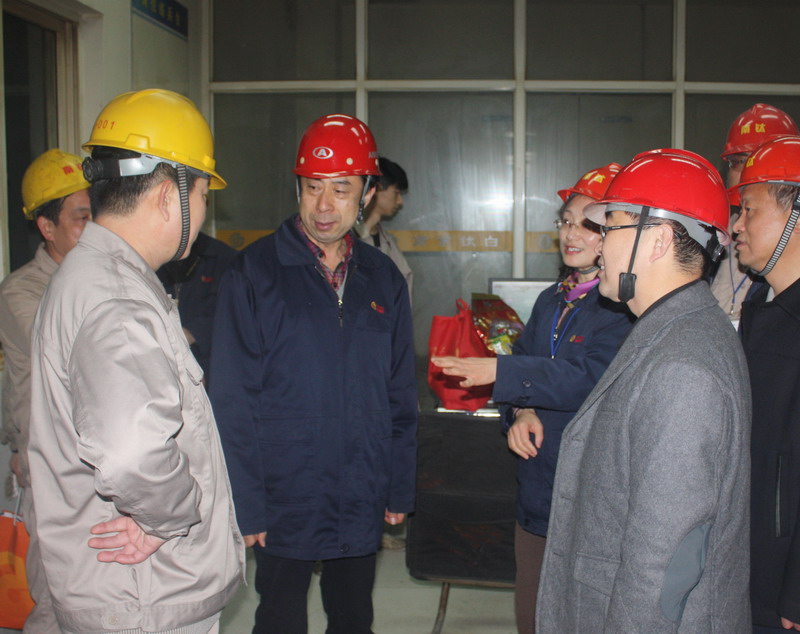 2014年正月初一, 南京鈦白公司總經理彭安錚女士陪同金浦集團領導看望慰問在節(jié)日中堅守工作崗位的一線員工。