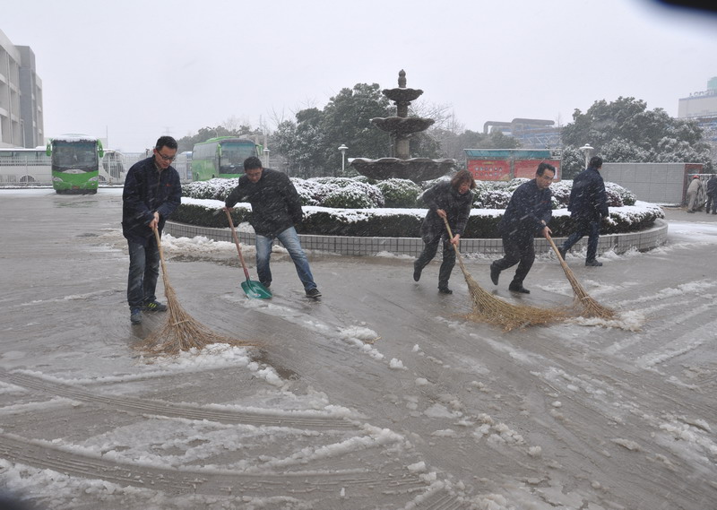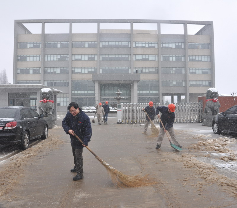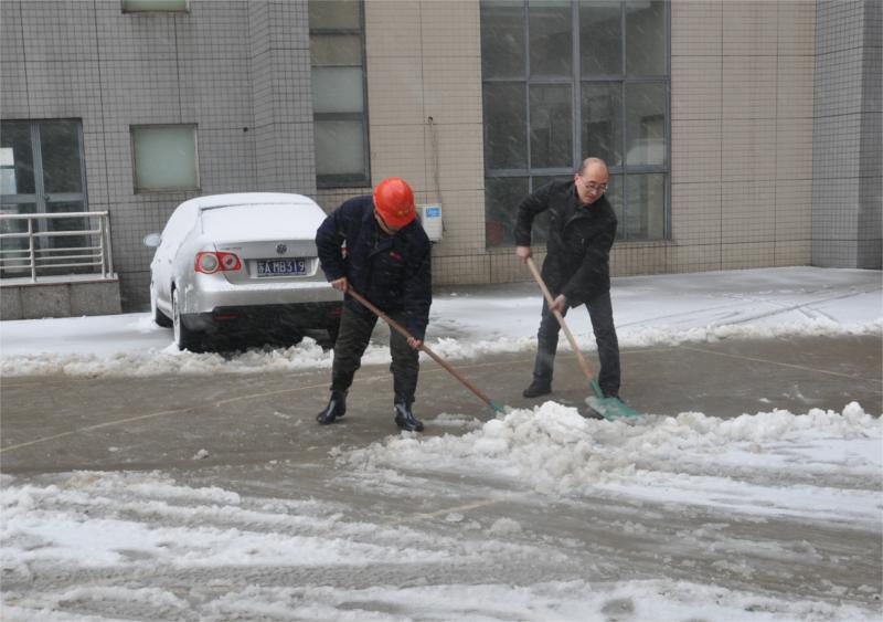 雪情就是命令,為了及時清除積雪,保證廠區(qū)主干道、門前道路暢通以及行人、車輛安全,次日清晨一上班,公司副總經(jīng)理徐長海就帶領相關部門干部及員工展開了清掃積雪活動。同志們頂風冒雪,不畏嚴寒,許多人的手和臉被凍得通紅,然而,這一切絲毫沒有影響大家的勞動熱情和工作效率,同志們團結協(xié)作、井然有序,掃的掃、鏟的鏟、推的推,干得熱火朝天,形成了一幅“汗水讓冰雪消融”的動人場景。僅僅經(jīng)過二十多分鐘的奮戰(zhàn),廠區(qū)主干道及門前道路積雪就被打掃得干干凈凈,有效地確保了廣大員工及車輛的出行安全。