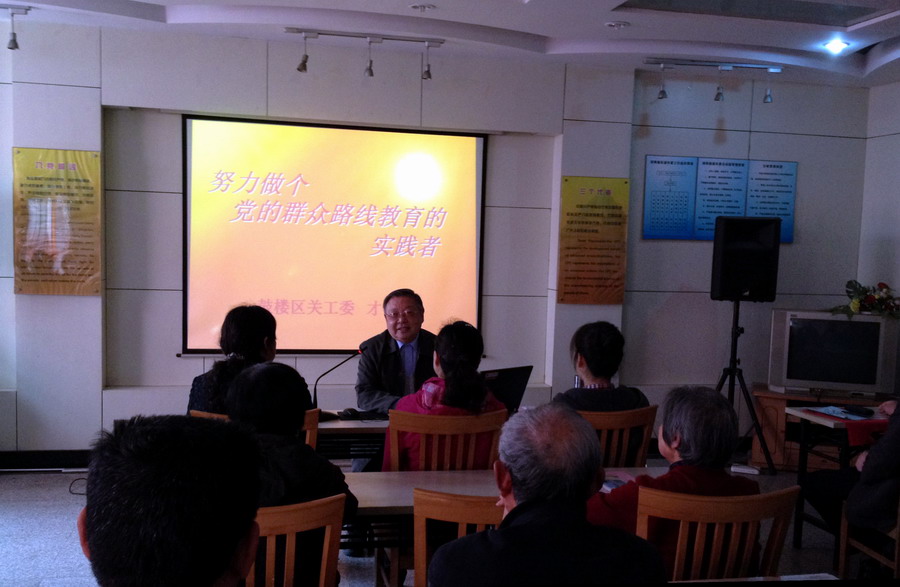 本次培訓(xùn)由鼓樓區(qū)講師團成員、原二十九中教師才春祥主講。才老師分別從黨的群眾路線是怎樣產(chǎn)生和發(fā)展的,什么是黨的群眾路線,為什么要繼續(xù)開展黨的群眾路線教育實踐活動,以及應(yīng)當如何實踐黨的群眾路線等四個方面進行了詳細闡述,給新黨員上了一堂精彩的黨課。才老師指出,作為一名基層普通黨員,既是黨的群眾路線的執(zhí)行者和實踐者,又是群眾路線的評判者,更需要認真學(xué)習(xí)、主動實踐、評判干部、共同提高,這才是一個共產(chǎn)黨員應(yīng)有的作風(fēng)和素質(zhì)。