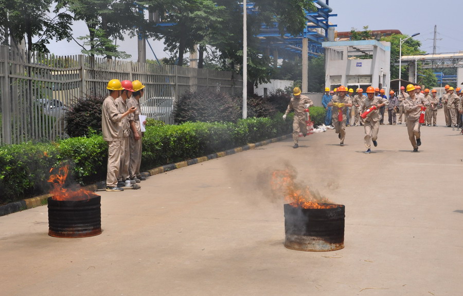 為了進(jìn)一步強(qiáng)化公司員工的消防安全教育,提高抗擊突發(fā)事件的應(yīng)變能力,正確使用滅火器材以及逃生的應(yīng)急方法等,鈦白公司根據(jù)2014年度“安全生產(chǎn)月”活動(dòng)計(jì)劃安排,于6月27日下午在生產(chǎn)區(qū)組織開(kāi)展了一場(chǎng)消防應(yīng)急演練活動(dòng)。此次消防演練由公司安全環(huán)保部、工會(huì)等聯(lián)合舉辦,一車(chē)間、二車(chē)間、四車(chē)間、物流中心、質(zhì)檢中心、電儀中心及駐廠施工單位等9個(gè)部門(mén)約30余人參加。