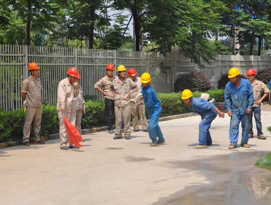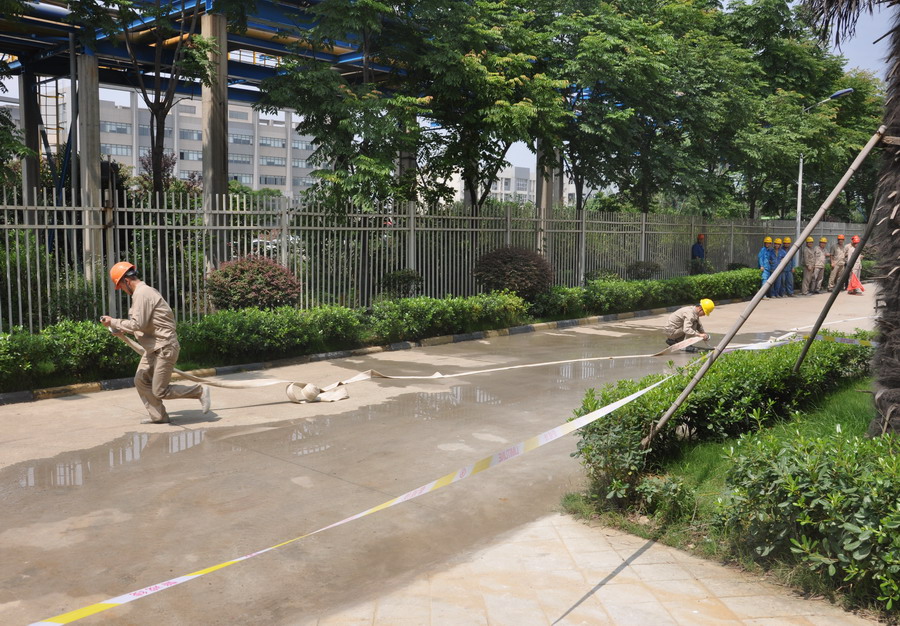 演練開(kāi)始之前,首先進(jìn)行了簡(jiǎn)短的開(kāi)場(chǎng)儀式,公司總經(jīng)理助理姜總明確了此次活動(dòng)的目的和重要意義,并勉勵(lì)大家積極參與,踴躍表現(xiàn),安全第一;安環(huán)部安全員夏康現(xiàn)場(chǎng)進(jìn)行了消防速成培訓(xùn),具體講解了滅火器材的種類(lèi)、性能、適應(yīng)火種及其操作要領(lǐng),并對(duì)消防器材的正確使用進(jìn)行了示范。開(kāi)場(chǎng)儀式結(jié)束后,按照預(yù)定程序,9個(gè)部門(mén)先后進(jìn)行了干粉滅火、快接消防水帶及現(xiàn)場(chǎng)人員疏散等演練比賽。