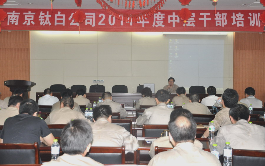 南京鈦白公司2014年上半年工作總結(jié)會暨2014年度中層干部培訓(xùn)于2014年7月12日在辦公樓二樓多功能廳舉行,公司領(lǐng)導(dǎo)及中層管理干部共50余人參加了此次會議。