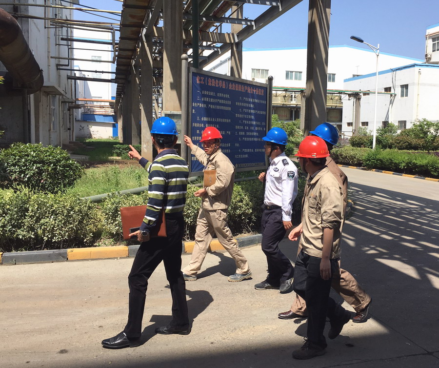 5月3日,省環(huán)保廳及園區(qū)環(huán)保局一行來公司進行專項執(zhí)法檢查,檢查人員通過現(xiàn)場巡查及臺帳查閱后,對我公司近年來環(huán)保管理工作較為滿意,一致認為較老廠區(qū)有明顯改觀,并希望我公司能夠繼續(xù)保持,不斷提升環(huán)保管理水平。